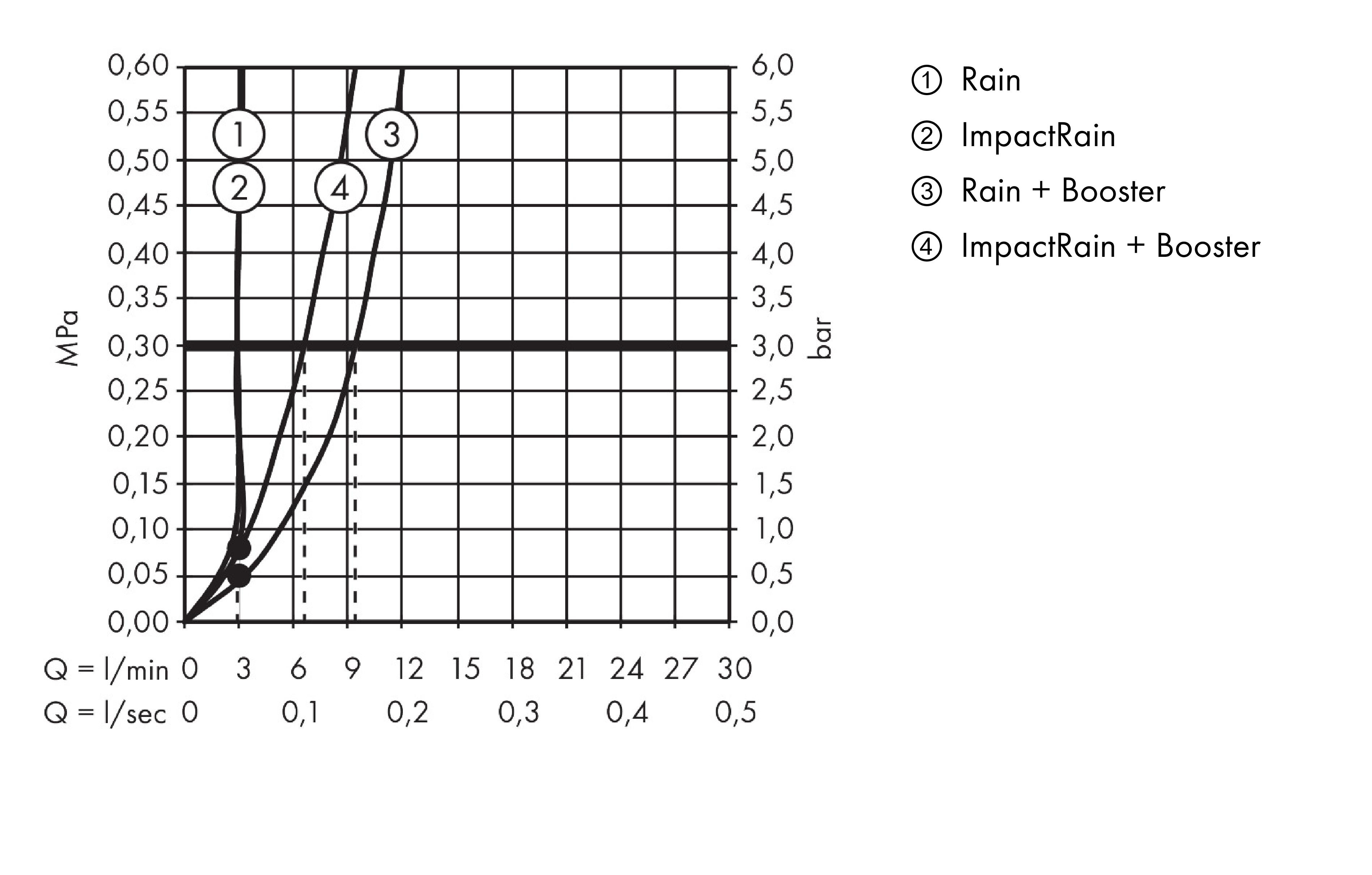 - natężenie przepływu strumienia ImpactRain przy ciśnieniu 3 barów: 2,9 l/min