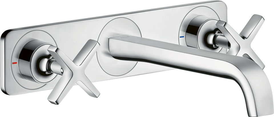 3-otworowa bateria umywalkowa z uchwytami krzyżowymi, płytką i wylewką 226 mm, ścienna, podtynkowa