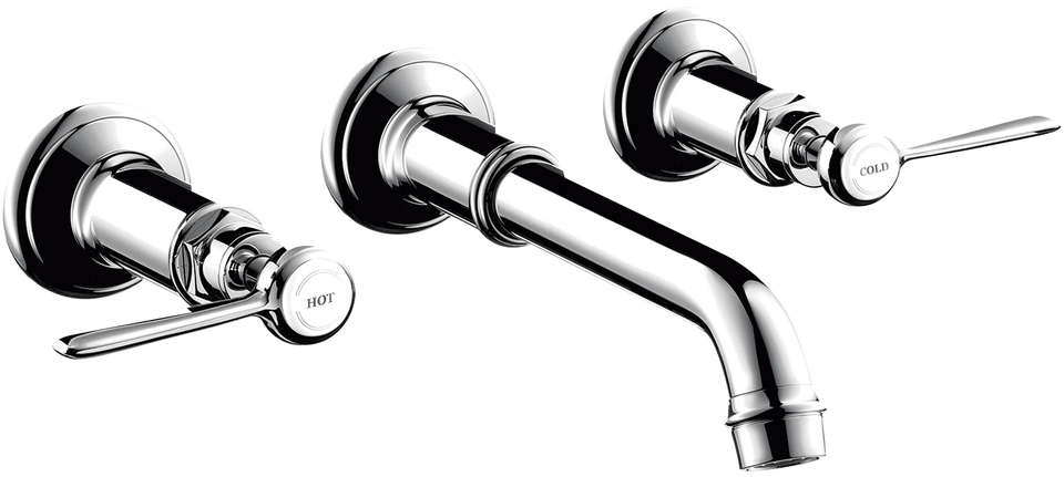 3-otworowa bateria umywalkowa z uchwytami jednoramiennymi, rozetami i wylewką 166 mm, ścienna, podtynkowa