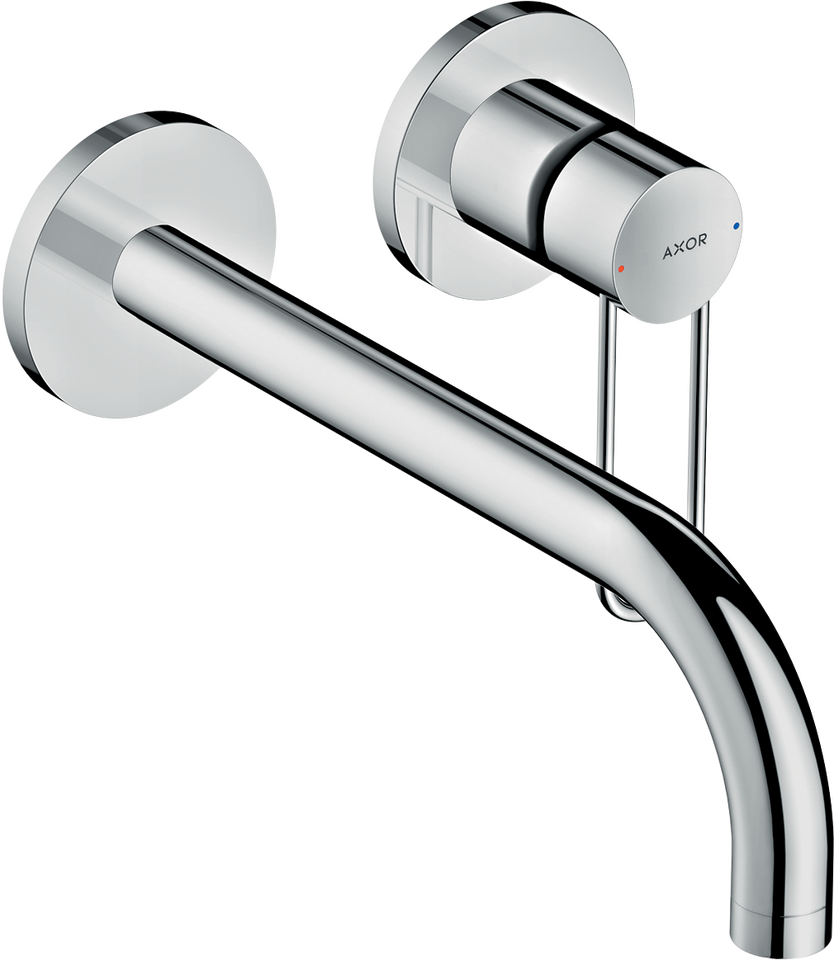 Jednouchwytowa bateria umywalkowa z uchwytem Pin, wylewką 220 mm i rozetami, ścienna, podtynkowa
