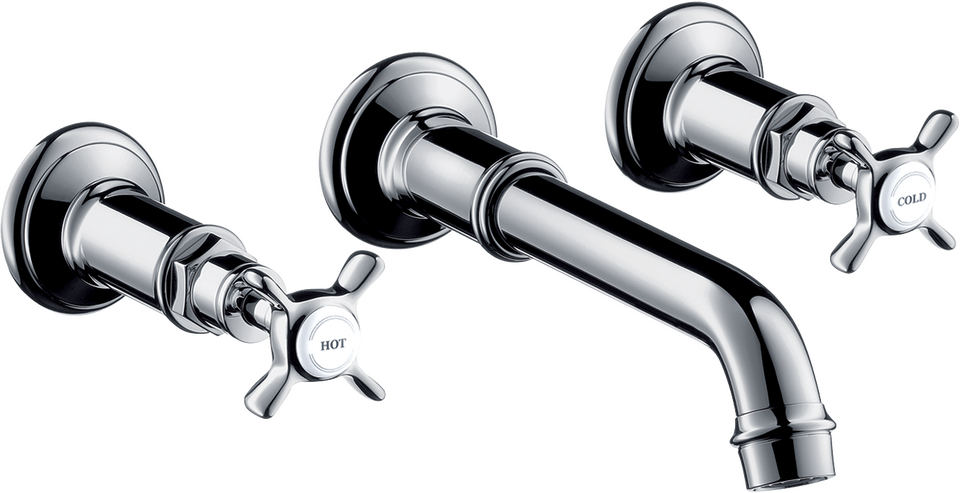 3-otworowa bateria umywalkowa z uchwytami krzyżowymi i wlewką 165 - 225 mm, ścienna, podtynkowa